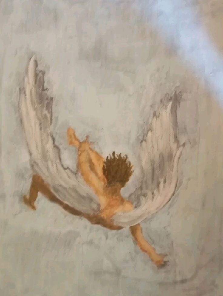 I couldn't help but notice the striking relation between these two sons. How they exchanged what was a delightful experience, for descent. How I mimick their foolish decisions in my day to day life. I fall , like Icarus , like Lucifer , feeling the growing distance between myself and what I could've been grow as I plummet in agony and Ire. The dry , hollow and manic laughter that echoes in the sky comes from pits of despair and the darkness that consumes you as you fall further from the light that was once your only ambition, your sole devotion.